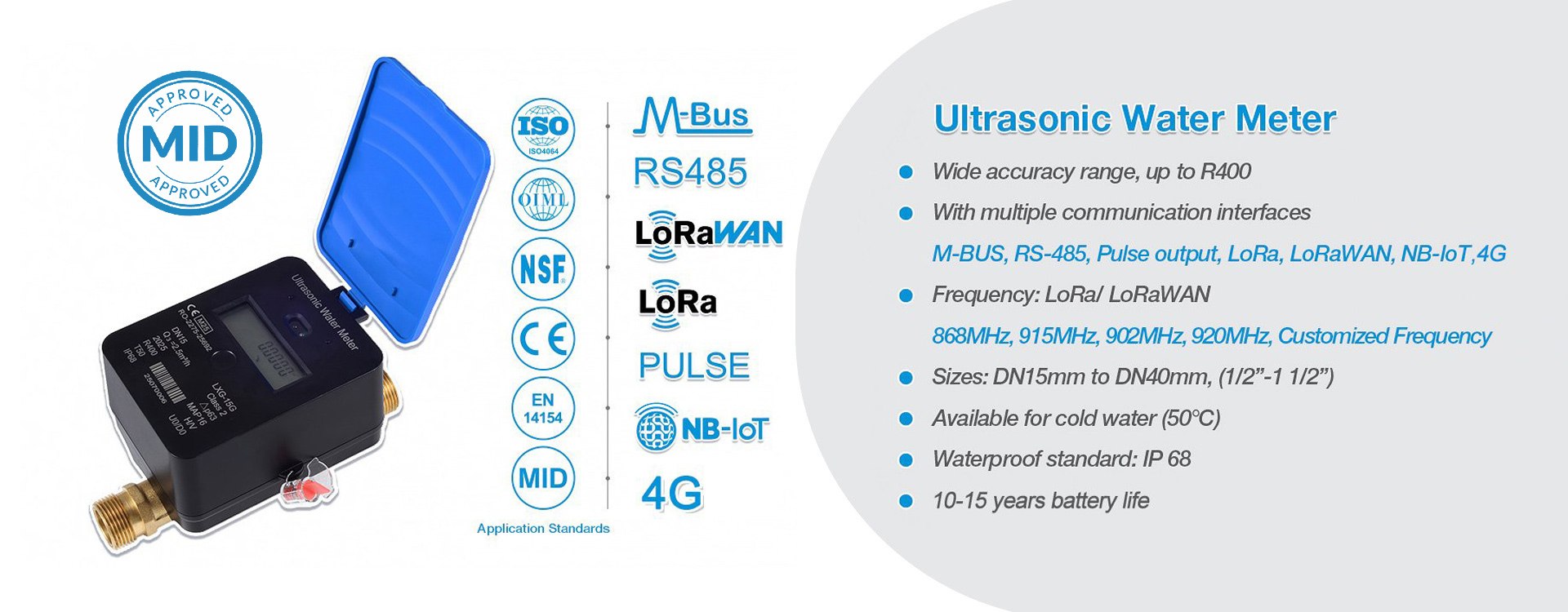 Ningbo Xinghang Meter Technology Co.,Ltd. has launched a new R400 ultrasonic water meter LXC-15G-40G, with communication M-bus, RS485, Pulse output, etc.